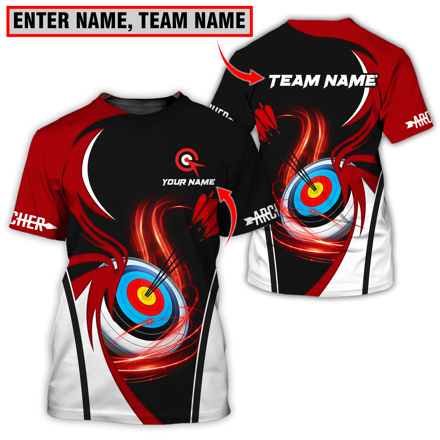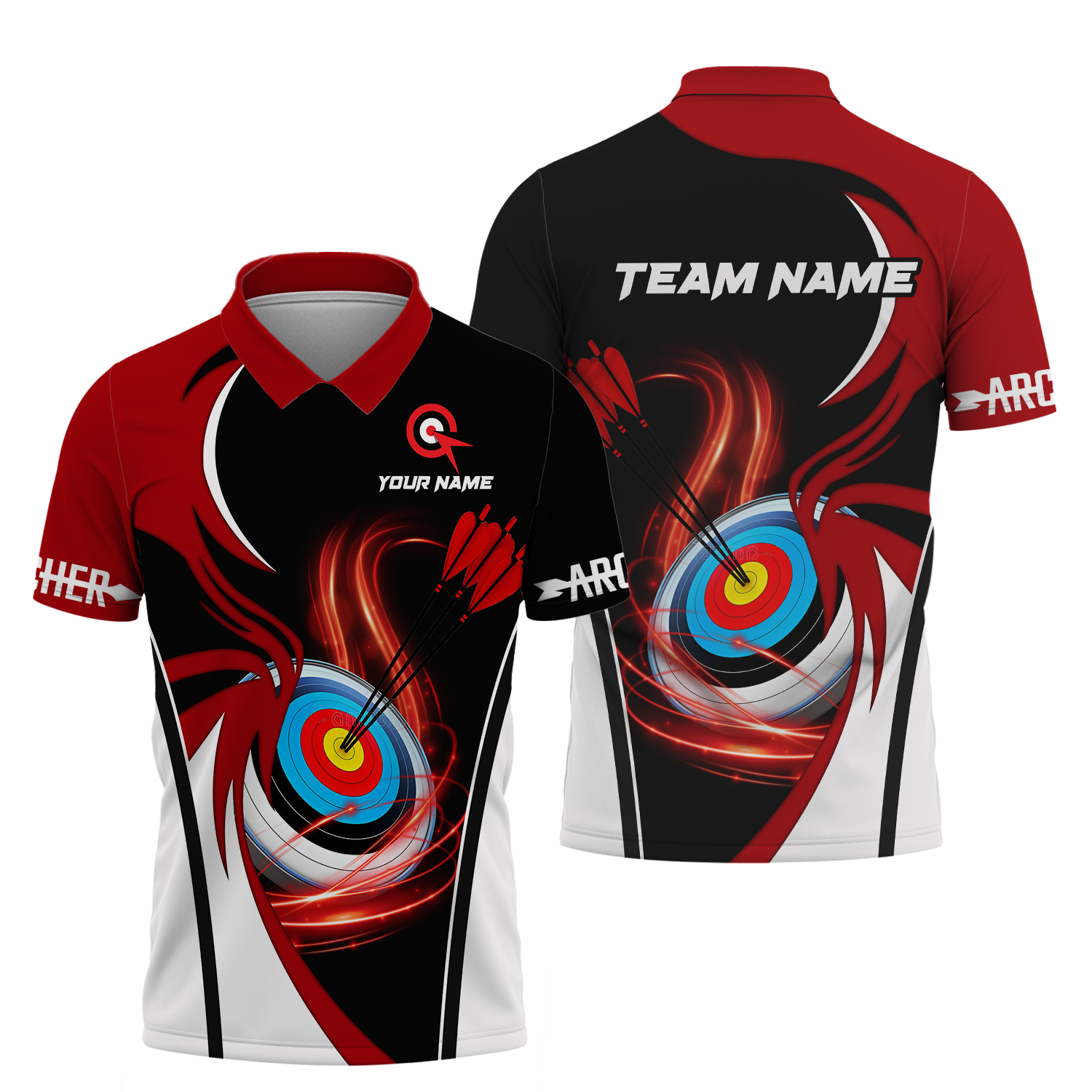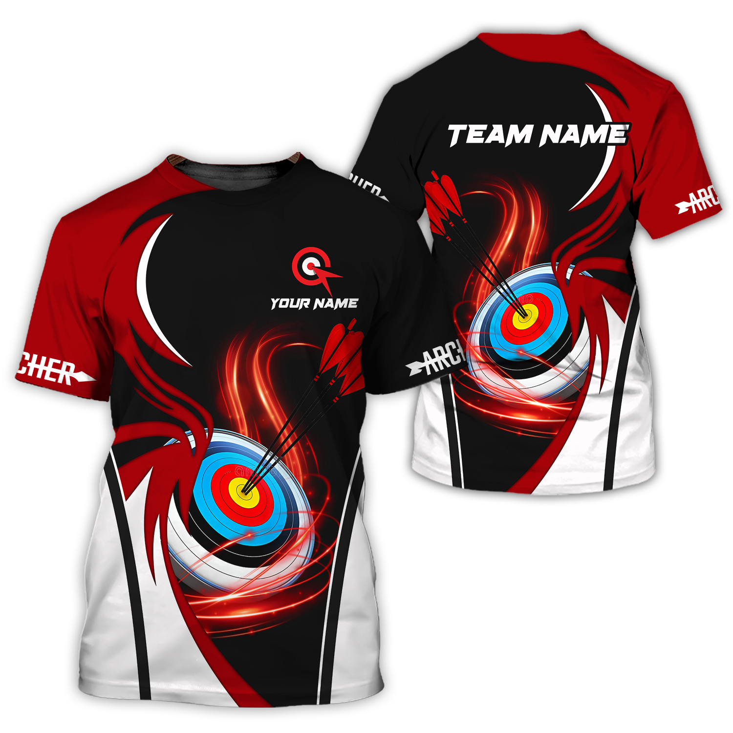 Unisex Shirt - Custom Name Archery Sport Shirt, Red Wave