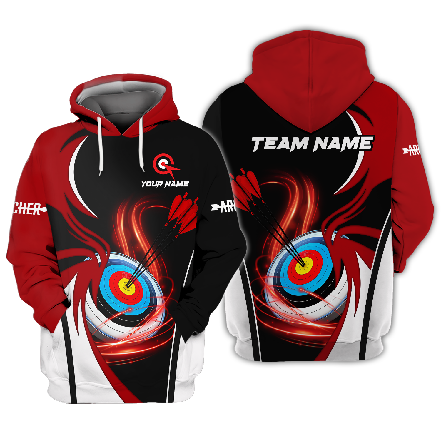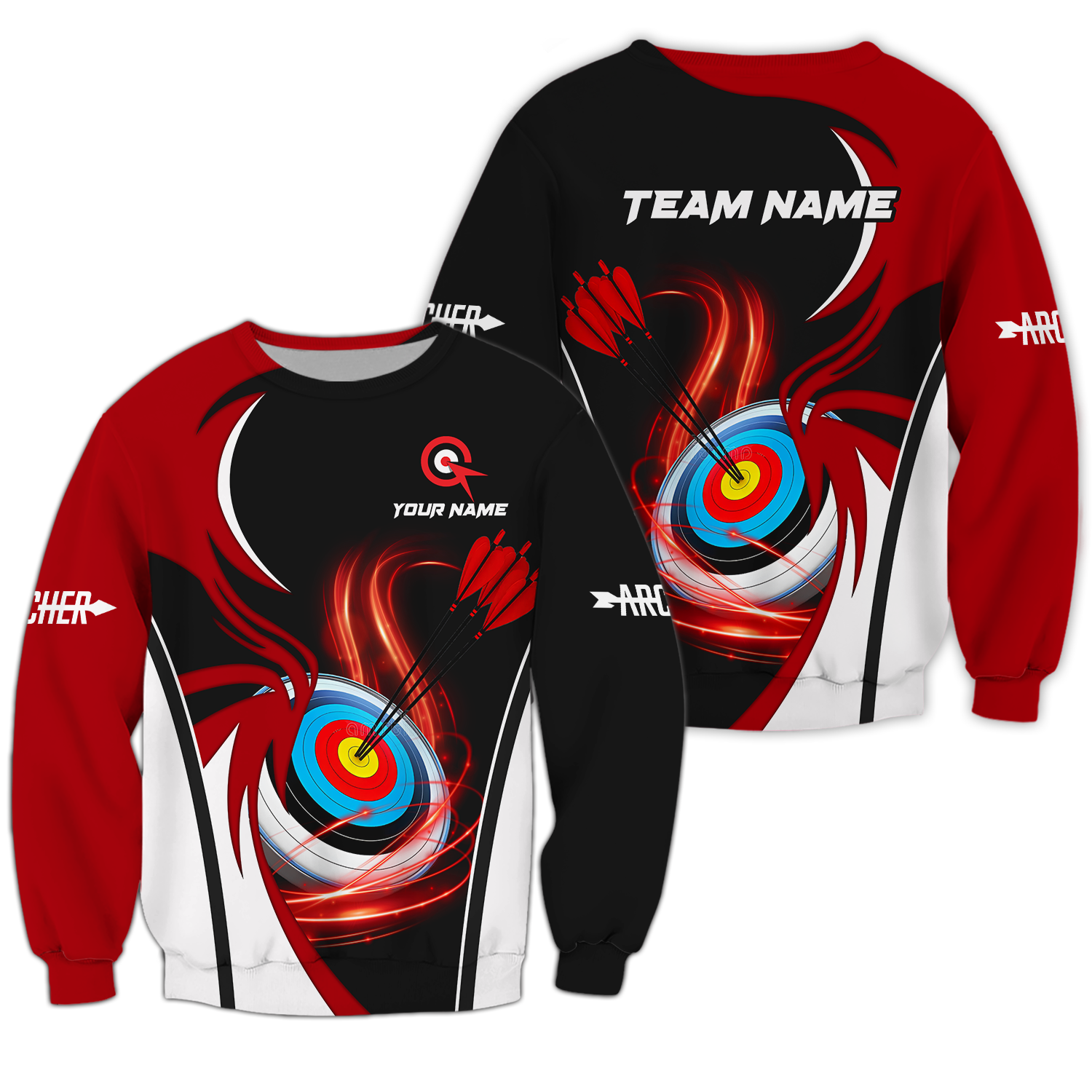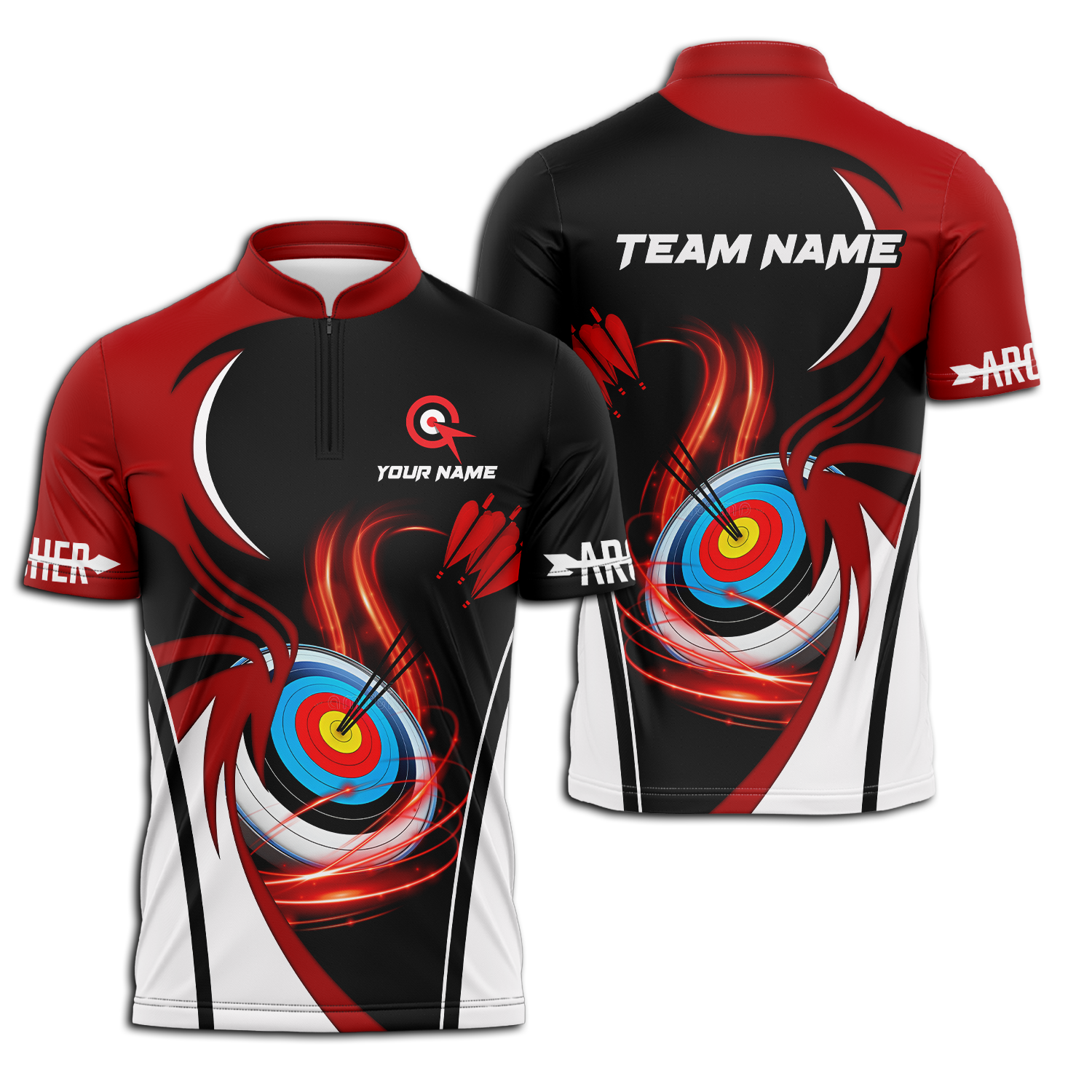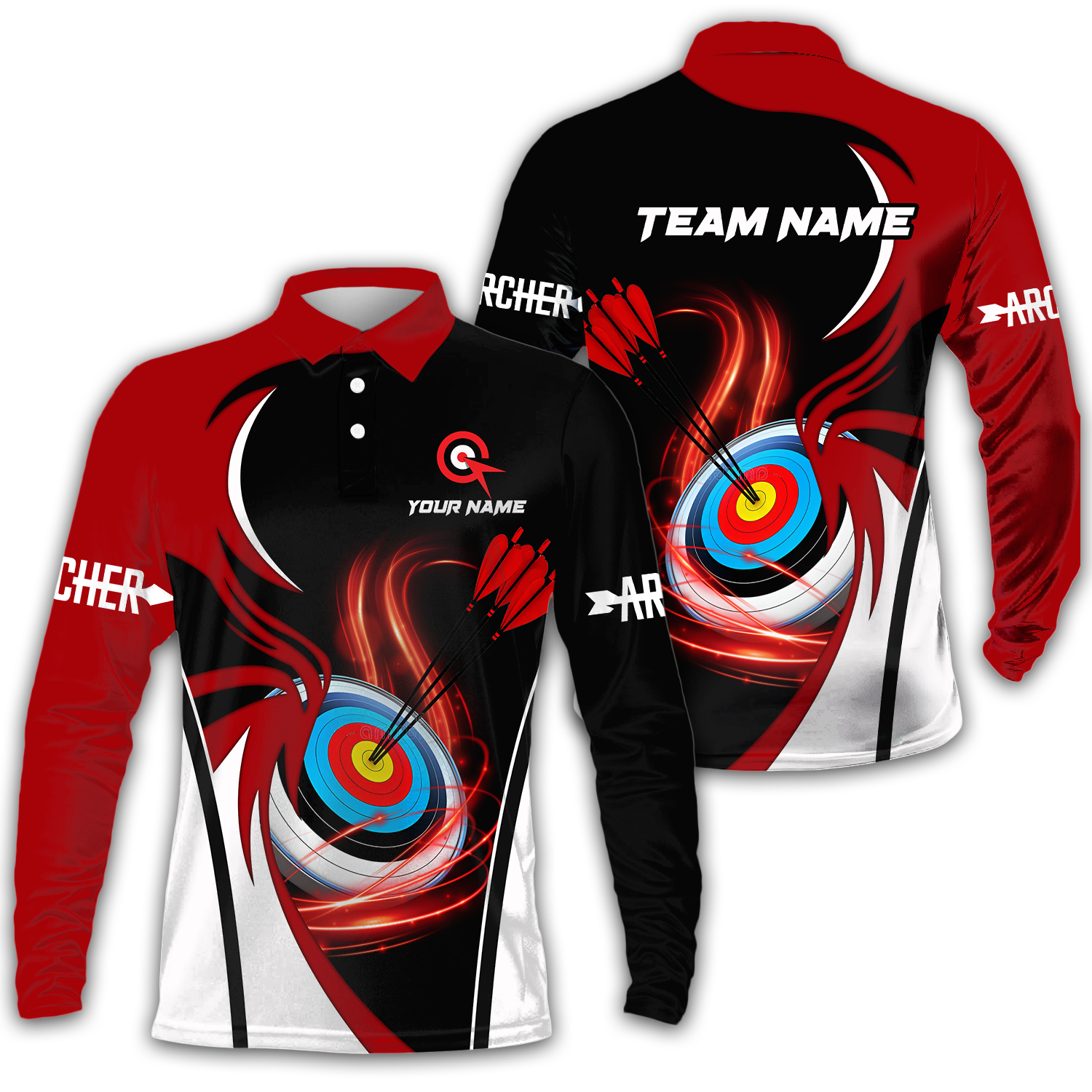 Unisex Shirt - Custom Name Archery Sport Shirt, Red Wave